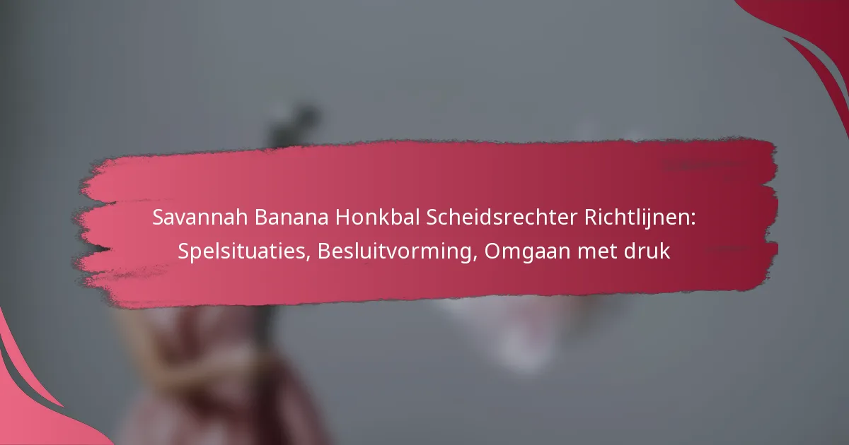 De richtlijnen voor scheidsrechters van de Savannah Banana baseball benadrukken het belang van het begrijpen van unieke spelregels en het beheersen van scheidsrechtersmechanismen. Scheidsrechters moeten in staat zijn om snel beslissingen te nemen onder druk, terwijl ze zorgen voor duidelijke communicatie met spelers en coaches. Door spelsituaties effectief te beheren en besluitvormingskaders te gebruiken, kunnen scheidsrechters een positieve omgeving bevorderen en eerlijk spel op het veld handhaven.